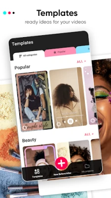 - Ready-made templates: a layout to your taste, upload 2 of your photos or videos, and the app will do the rest.