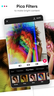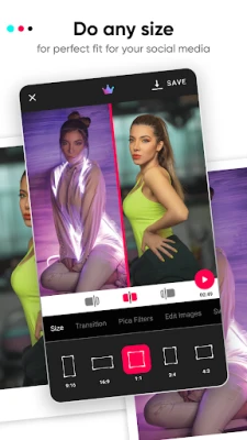 - Uniqueness: a huge library of Pica filters, textures, frames and fonts will help you create incredible and bright content.