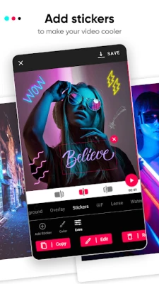 • A large library of free GIF files and unique sticker packs will make your videos brighter.