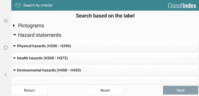 Classifindex lists the elements (pictograms, hazard statements, classes and categories) used in application of the new classification rules for chemical products. Classifindex is not a tool to create or validate labelling, but provides additional information on your suppliers' documents. Avec Classifindex : • Understand the new labels for chemical products and their safety data sheets. • Search for information on classification elements. • Create and use your personal file. • Freely add to and document the records created.