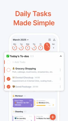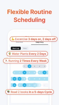 - Goal-based routine setting like '3x weekly workouts' or 'drink 8 glasses of water daily'