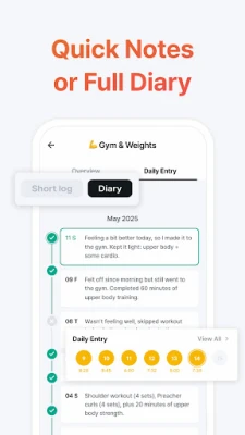 - Short records like weight, workout time, reading amount displayed in calendar and graph view